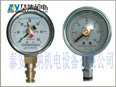 耐震式综支架测压表主要由量程为60MPa耐震抗冲击式压力表 (压力表读盘直径60mm)和外壳体及标准配件综采插接头组成。具有使用操作方便、稳定性好、使用寿命长、价格低等优点。测压表整体外视示意如图所示。