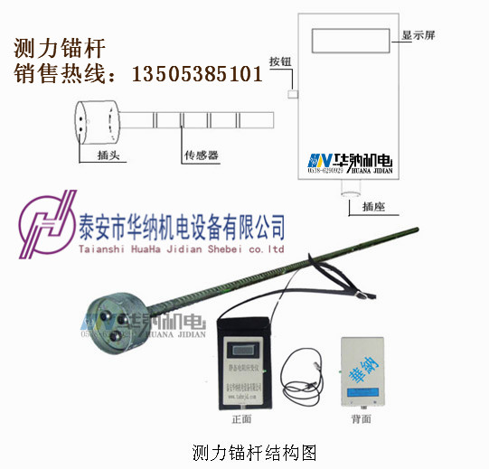CM-12型测力锚杆使用方法:该测力锚杆与二次仪表(静态电阻应变仪)显示器配套使用,可对锚杆内力进行检测。测量方法:手持二次仪表(静态应变仪)显示器导线插头的尾部,对准锚杆插座的缺口,轻推插头尾部,拧紧,然后可按动显示右边的按钮,显示器显示数字。