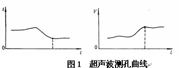 超声波在岩体中的传播速度与岩体受力状态及裂隙程度有关,当围岩裂隙(破裂逢)多时,波速相对于深度完整无裂隙(未松动破坏)岩(煤)体的波速低。通过岩石钻孔(¢41~45mm)测出声波纵波速度在围岩钻孔中的分布变化曲线或“时间——孔深”曲线,即可判定围岩裂隙(松动)范围。