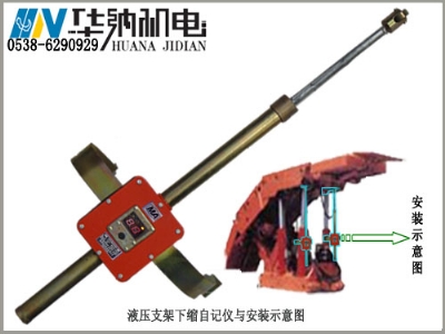 先将自记仪上部的转轮顶到综采支架的顶板上,并压缩一段距离,使自记仪内部的弹簧加上一定的力。调整好后将自记仪上的卡子卡到支架的油缸上,并将卡子上的螺丝上紧,把自记仪固定牢固后,记录下自记仪显示出的初读数,以后再检测到的就是支架位移的变化值。显示方式可用矿灯对准前部的窗口照射和按前部的按钮都可。