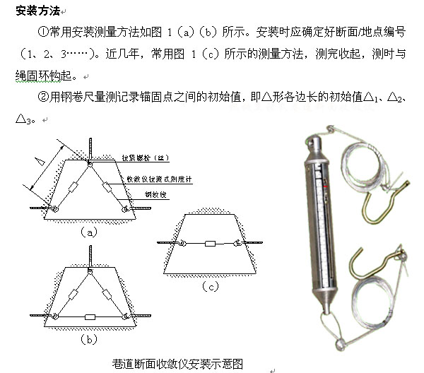 QT—80型巷道断面收敛仪的设计用意是为了测量巷道在当时围围岩压力作用下,巷道断面的收缩量(即当时压力、时间下的面积变形量)。仪器具有操作简便实用,测量性能稳定可靠,读测方便,测量精度能满足要求和最大限度的减小了测量影响生产过程的矛盾等优点。QT—80型巷道断面收敛仪的设计用意是为了测量巷道在当时围围岩压力作用下,巷道断面的收缩量(即当时压力、时间下的面积变形量)。仪器具有操作简便实用,测量性能稳定可靠,读测方便,测量精度能满足要求和最大限度的减小了测量影响生产过程的矛盾等优点。