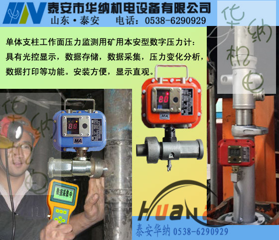 基本功能:YHY60(C)矿用本安型数字压力计与本安型手持采集器配套使用,适用于煤矿井下单体支柱工作阻力监测,是监测单体支柱工作阻力连续记录的智能化仪表,俗称“电脑单体自记仪”。