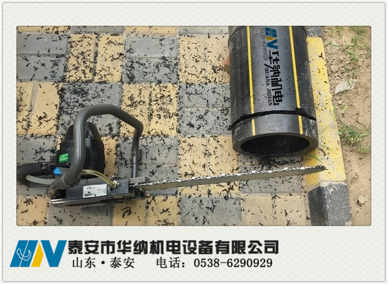 矿用气动链条锯由进口金刚石链条锯头、液压胶管总成、自加压冷却水箱三大部分组成,液压胶管总成将气源和金刚石链条锯连接起来,气源提供的气压驱动金刚石链条锯高速运转,进行切割。工作时,冷却水通过链板中间的孔流向切割部位,起到冷却和降尘的作用。